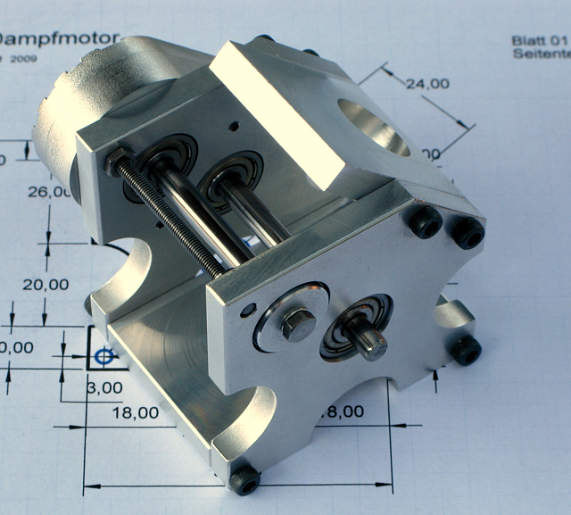 ein Rundschieber gesteuerter Einzylinderdampfmotor